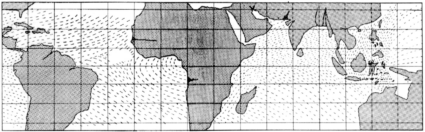 Halley passzátszelek-térképének egyszerűsített rajza