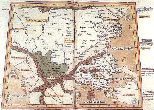 Dacia térképe az ulmi Ptolemaioszból. Fametszet.